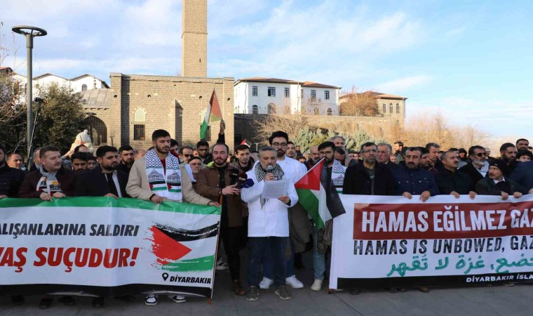 Merkez Sur ilçesinde bulunan Dört Ayaklı Minare önünde toplanan grup, daha sonra Hz. Süleyman Camii’ne kadar slogan atarak yürüdü. Yürüyüşe, çevredeki vatandaşlarda alkış çalarak eşlik etti. Burada, grup adına açıklama yapan Doç. Dr. Eşref Araç, sağlık çalışanları olarak geçtiğimiz günlerde Gazzeli bir meslektaşları Dr. Hussam Abu Safiye’nin İsrail tarafından zorla gözaltına alınmasını kınamak üzere bir araya toplandıklarını söyledi.
