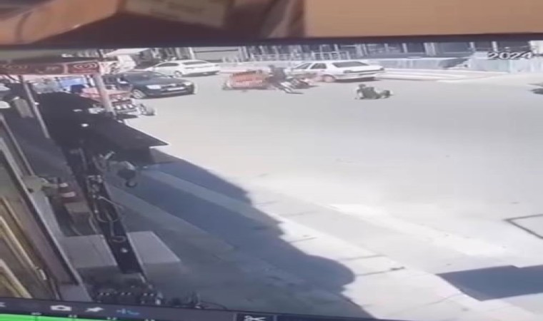 Diyarbakır’ın Çermik ilçesinde iki sepetli motosikletin kafa kafaya çarpışması sonucu meydana gelen kazada 3 kişi yaralandı. Kaza anı çevredeki bir iş yerinin güvenlik kamerasına yansıdı.
