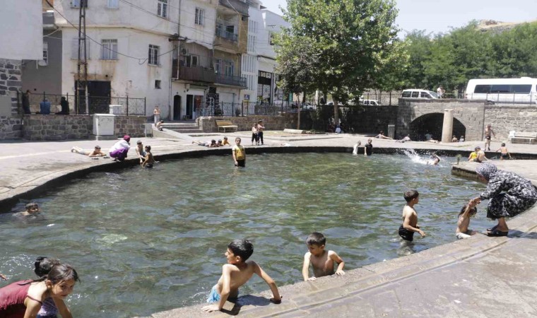 Diyarbakır'da sıcak hava dalgası 41 dereceye ulaşırken, serinlemek isteyen çocuklar, kentin sembolü haline gelmiş tarihi Anzele Suyu'na akın etti. Kentte aşırı sıcakların etkisi altında olduğu bir günde, çocuklar Sur ilçesindeki Anzele Parkı'ndaki süs havuzunu eğlenceli bir yüzme noktasına dönüştürdü.
