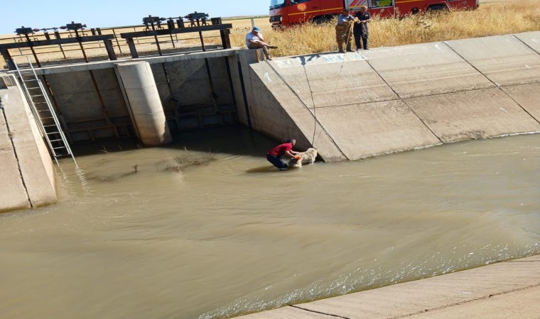Diyarbakır’ın Çınar ilçesinde sulama kanalına düşen köpek, itfaiye ekipleri tarafından kurtarıldı.