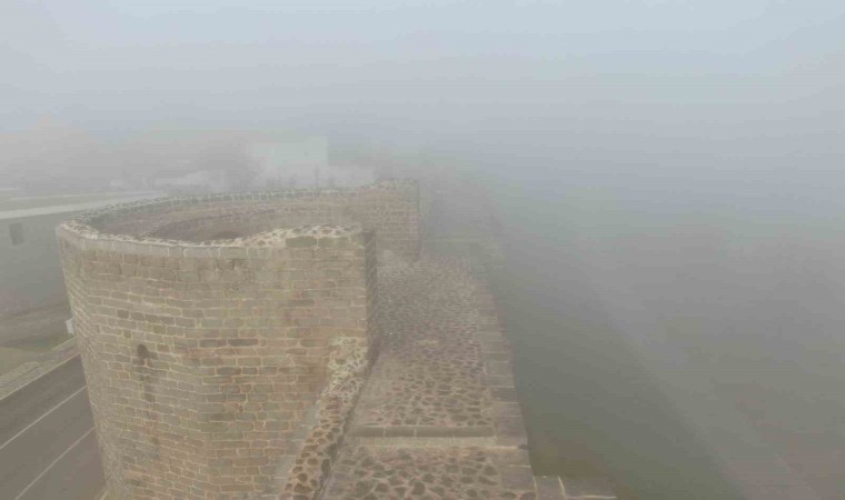 Diyarbakır’da sis altında kalan tarihi yapılar kartpostallık görüntüler oluştururken, uçak seferlerinde ise aksamalar yaşandı.