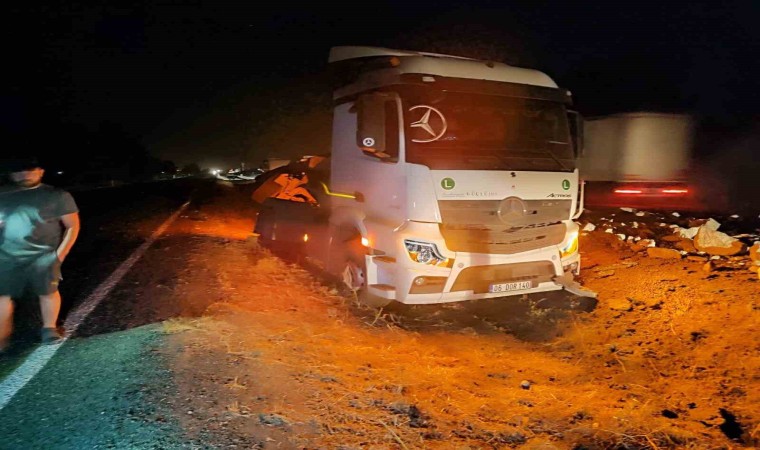 Diyarbakır’ın Bismil ilçesinde giden taş yüklü tırın dorsesi refüje devrildi.
