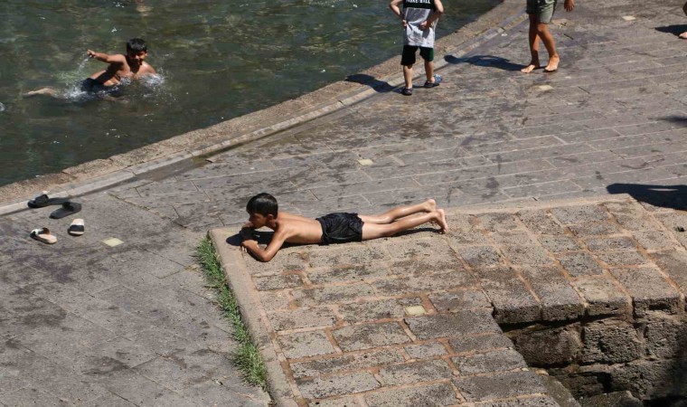 Kent genelinde kimi vatandaş gölgelik olan yerlerde kendini sıcak havadan muhafaza ederken, kimisi ise evinde bekleyip dışarı çıkmamayı tercih ediyor. Sıcaktan bunalan çocuklar ise, Sur ilçesindeki tarihi Anzele Suyuna girerek tehlikeye aldırış etmeden serinlemeye çalışıyor.