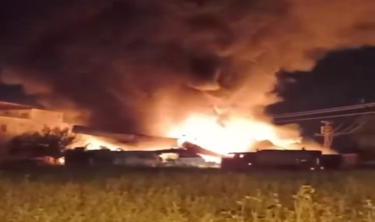 İsabet sonrası depo, alevlere teslim olarak küle döndü.