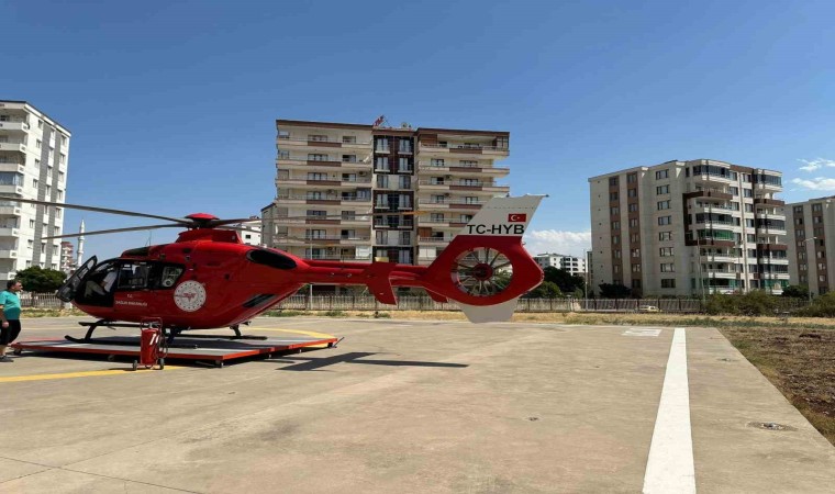 Diyarbakır’ın Lice ilçesinde evinin damından düşüp kafa travması yaşayan 8 yaşındaki Miraç Çapar, ambulans helikopterle hastaneye kaldırıldı.