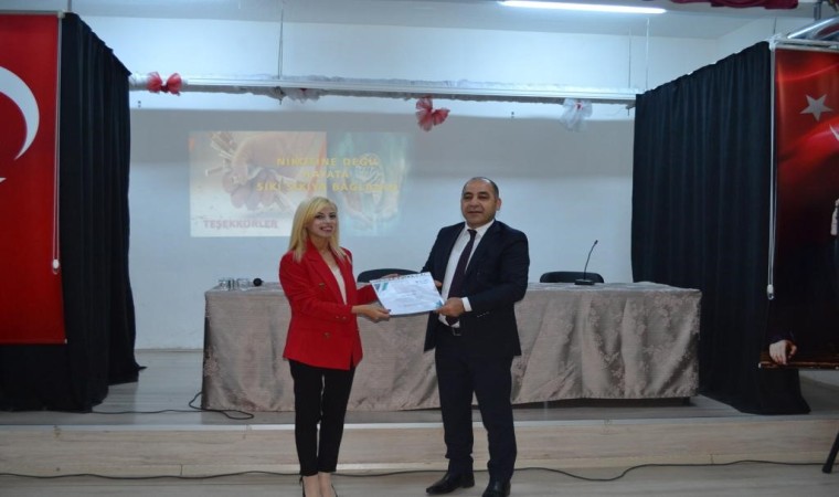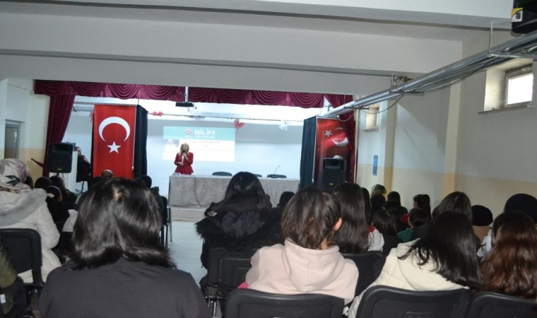 Bilim Söyleşileri çerçevesinde Doç. Dr. Gülay Yılmazel, Buharaevler Mesleki ve Teknik Anadolu Lisesi’nde “Nikotin Bağımlılığı ve Nikotin Bağımlılığı İle Mücadele” konulu konferans verdi. Davranışların, düşünce ve inanışları şekillendirdiğini, bağımlılık davranışı söz konusu olduğunda, yine düşünce ve inançları göz önüne almak gerektiğini dile getiren Doç. Dr. Gülay Yılmazel, “Bağımlılık konusundaki en yaygın inanış, ’bir kereden bir şey olmaz’ düşüncesidir. Korku ve merakla başlayan süreç, ’bir kereden bir şey olmaz’ düşüncesiyle devam ettiğinde, döngüye bir adım daha yaklaşılmış olur. Bu duruma bir örnek verecek olursak birey tütüne karşı bir merak geliştirebilir, fakat aynı zamanda ona karşı bir korku da beslemektedir. Tam da bu noktada ’bir kereden’ başlayan deneme süreci, bağımlılığa doğru ilerleyen bir döngü içerisinde devam eder. Bir kere denediğinde, artık bir daha eskisi kadar korkmamaya başlar. Korku ortadan kalktığında, ikinci kez denemenin önü de açılmış olur. Kişi bu döngünün farkında olmadığında, kendisini kısır bir döngünün içerisindeymiş gibi hissedebilir. Fakat bu döngü, kısır bir döngü olmak zorunda değildir. Sürecin farkında olup, gerekli desteği aldığında bu döngüyle nasıl mücadele edeceğini de öğrenmiş olur” dedi.