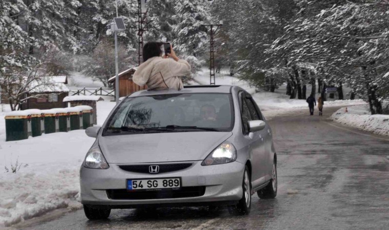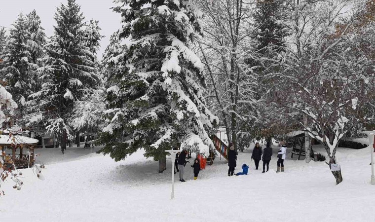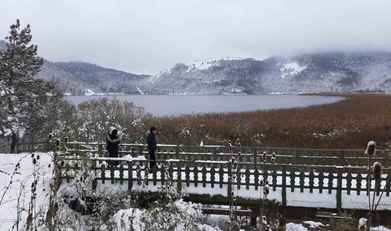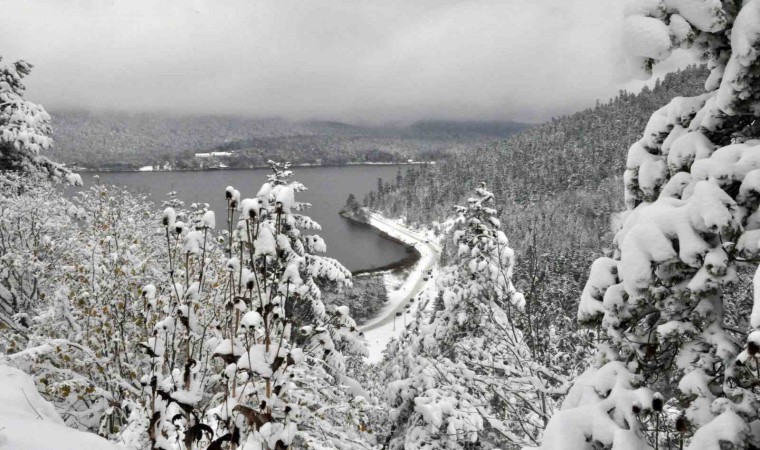 Türkiye’nin önemli turizm merkezlerinden Abant Gölü Milli Parkı’nda kar kalınlığı yeşil alanlarda 30 santimetreye ulaştı. Beyaz gelinliği giyen Abant’a ziyaretçiler akın etti.