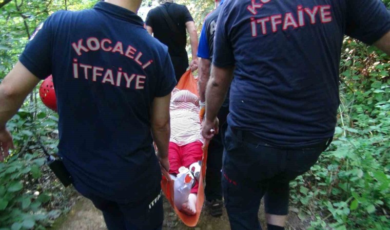 Kocaeli’nin Gölcük ilçesinde doğasıyla hayranlık uyandıran Nüzhetiye Şelalesi’ni görmek için yürüyüş yaptığı esnada düşerek yaralanan kadın, AFAD ve itfaiye ekiplerince metrelerce taşınarak kurtarıldı.