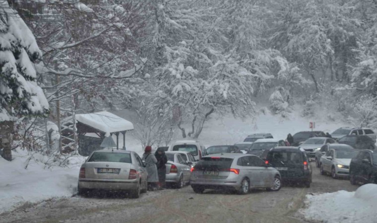 Etrafı ormanlarla çevrili, kar kalınlığının 50 santimetreye ulaştığı Abant Gölü Milli Parkı’nda ziyaretçiler sebebiyle giriş ve çıkışlarda trafik kilitlendi.