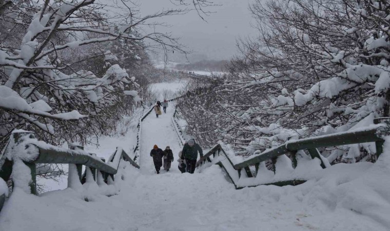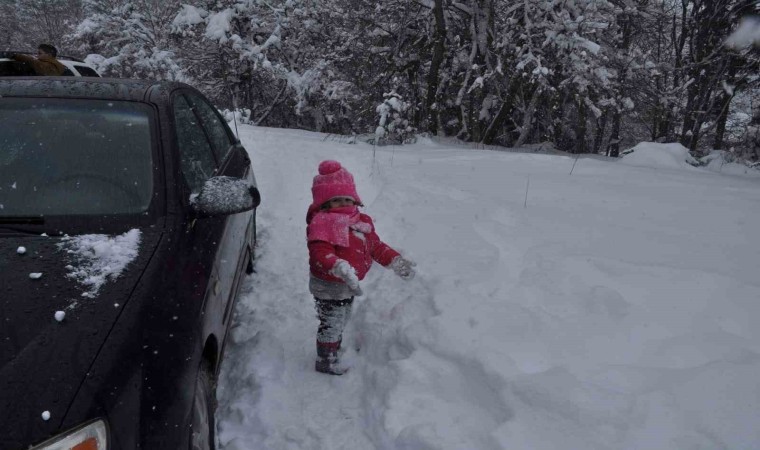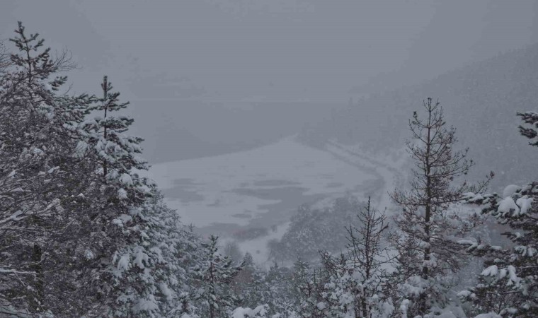 Bolu’da 3 gündür aralıklarla etkili olan kar yağışı nedeniyle Abant Gölü Milli Parkı’nda kar kalınlığı 50 santimetreye ulaştı. Dört yanı ormanlarla çevrili olan milli parkta kartpostallık görüntüler ortaya çıktı. Kar yağdığını duyan tatilciler ise Abant’a akın etti. Ziyaretçiler sebebiyle giriş ve çıkışlarda trafik kilitlendi. Uzun araç kuyruklarının oluştuğu Abant Gölü’nde ziyaretçiler dakikalarca trafiğin hareket etmesini bekledi.