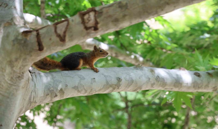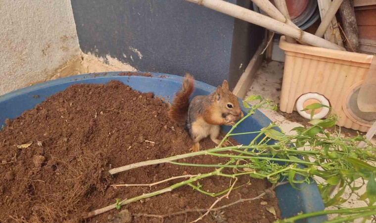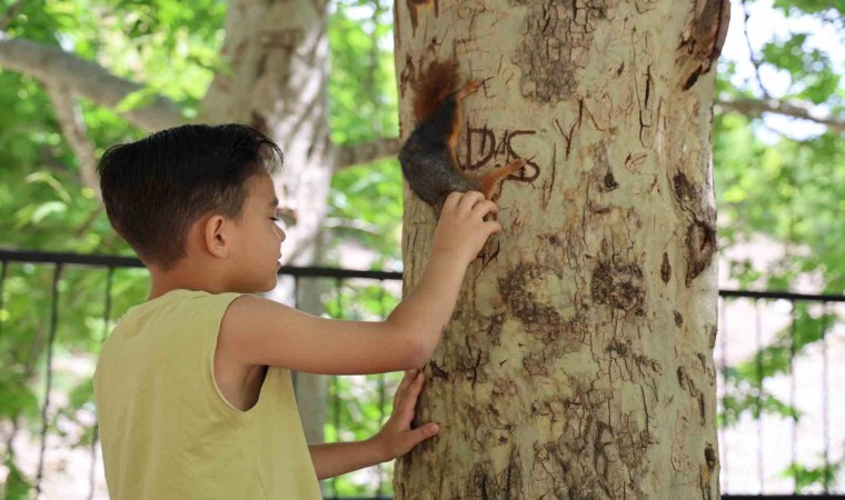 Adana’nın Feke ilçesinde ağaç kovuğunda buldukları ve annesi gelmeyince köyde kediler tarafından zarar verilmemesi için büyüttükleri yavru sincabı yeniden doğaya bıraktılar.