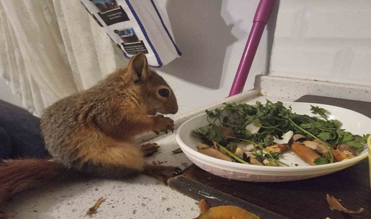 Doğaya bırakılan sevimli sincap ilk etapta ayrılmak istemese de ağacın dallarında gezerek kısa bir süre sonra bölgeden ayrıldı. Geriye evde keyifle yediği meyveler ve sevimli yaramazlıklarının görüntüleri kaldı.