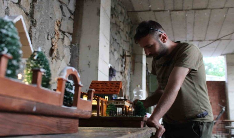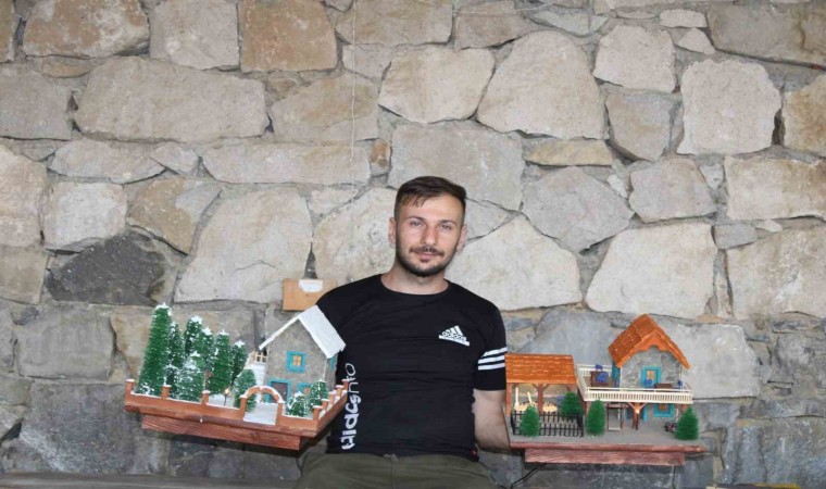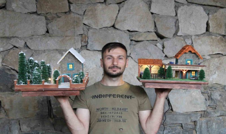 Erzurum’un Uzundere ilçesinde yaşayan Lokman Kalaycı, doğadaki malzemeleri toplayıp maket evler yaparak Türkiye’nin dört bir tarafına gönderiyor.