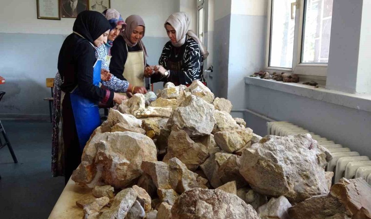 İşledikleri taşlarla yörenin kültürel tanıtımına da katkıda bulunan kadınlar, kursta taşların verdiği pozitif enerji ile de gündelik yaşamlarında huzur buluyor.