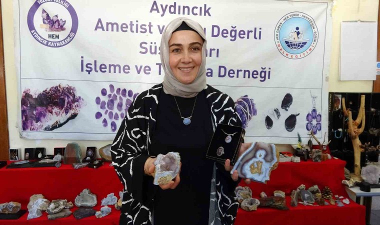 Aydıncık Kadın Girişimi işletme ve Üretim Kooperatifi Başkanı Nimet Türker de, ilçede ametist, jasper, kalsedon, akik, opal ve kuvars gibi birçok yarı değerli taşın çıktığını söyleyerek, “Biz bunları yöremizde çıkarttıktan sonra atölyemize getirip ayrıştırıyoruz. Atölyemizde taşların uygun yerlerinden takılar haline getiriyoruz. Bu yarı değerli taşları kolyeler, yüzükler, bileklikler birçok takı aksesuarına dönüştürüyoruz. Yöremizde çıkan en kıymetli taşlardan birisi de ametist taşı, mor Yakut olarak bilinir. Yarı değerli taşların içinde en değerlisidir. Şifası en yüksek taşlardandır, yine vücuttaki negatif elektrik yükünü alıp pozitif enerjiye çevirdiği bilinmektedir. Bunun yanı sıra nazara karşı etkili olduğu bilinmektedir. Birçok şifalı yönleri vardır. Biz de bunları takılara dönüştürüyoruz, insanların hizmetine sunuyoruz. Onlar da şifası ve görselliği bakımından bu ürünleri tercih ediyorlar” ifadelerine yer verdi.