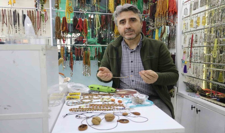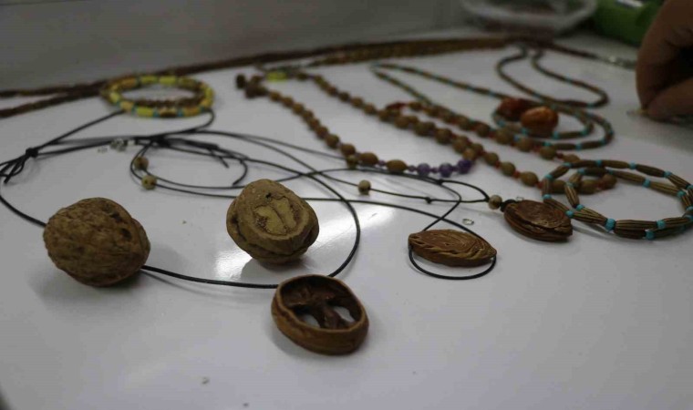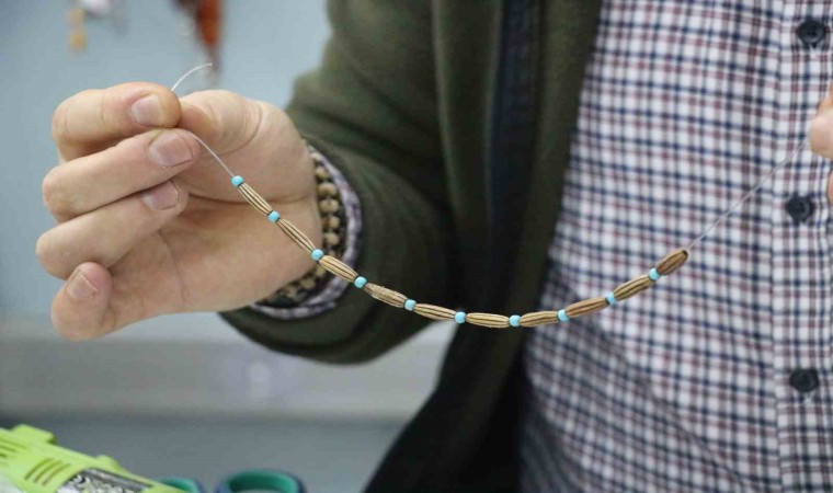 Sivas’ta yaşayan İbrahim Kozan, geri dönüşüme farklı bir boyut kazandırarak doğal çekirdeklerden kolye, tespih, takı, ve bileklik yapıyor. El emeği ve doğal olan bu ürünler oldukça dikkat çekiyor.