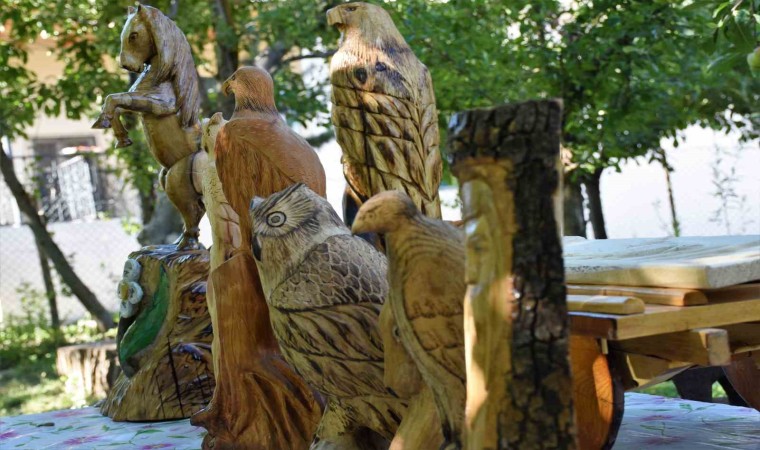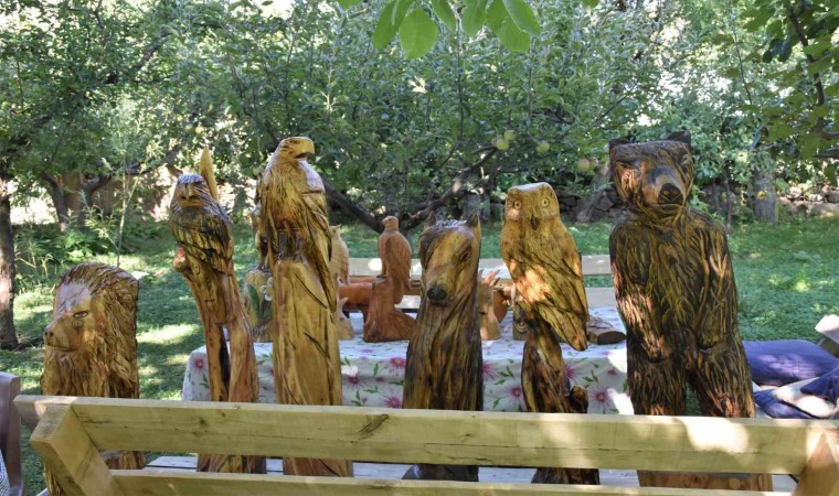 Muş’un Varto ilçesine bağlı Taşçı köyünde yaşayan ve hayvancılıkla geçimini sağlayan Turabi Yoloğlu, doğadan topladığı kurumuş ağaçları ve taşları sanat eserine dönüştürüyor.