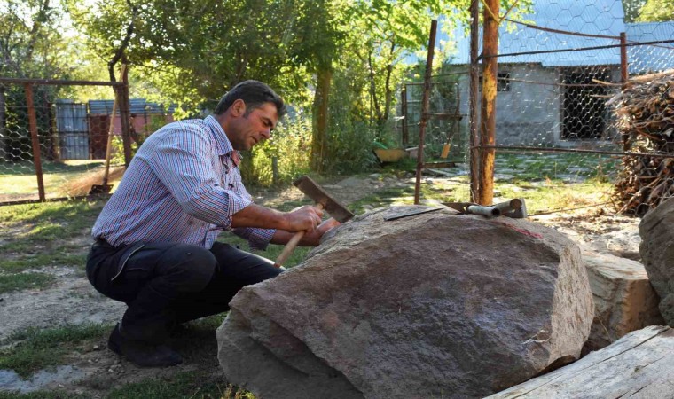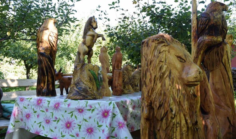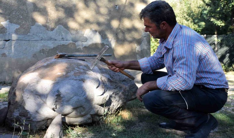 Hayvanlarını otlatırken doğada gördüğü ağaçlarla yüzlerce hayvan figürü ve süs eşyası yaptığını belirten Turabi Yoloğlu, şimdi ise taşlara şekil vererek sanat eserine dönüştürdüğünü aktardı. Yoloğlu, "23 yıldır heykel yapıyorum, şimdiye kadar yüzlerce eser yaptım. Bir atölyem yok, hatta yaptığım eserleri muhafaza edecek yerim bile yok. O yüzden yaptığım birçok heykel ve objeyi eş dosta hediye ettim. Ben genelde doğada bulduğum kurumuş ağaçları ve şekillenebilecek taşları şekillendiriyorum. Taşa şekil vermeyi, heykele dönüştürmeyi daha çok seviyorum çünkü doğada istediğim ağacı bulamıyorum, canlı bir ağacı da ben kesinlikle kesmem. Benim bir atölyem yok, öyle her çeşit araç gerecim de yok. Heykeli bir çekiç ve bir murçla yapıyorum" dedi.