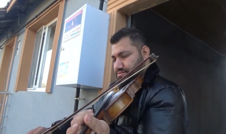 Çanakkale’nin Bayramiç ilçesinde müzisyen Hüseyin Uygun, evine bağlanan doğal gazın açılışını keman çalarak kutladı.