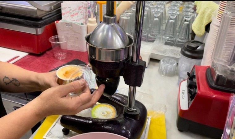 “Portakal, nar, ananas, elma suyu şu an vatandaşların da en çok tercih ettiği şeyler arasında yer alıyor. Piyasa da boyalı, gıda maddeli, asitli içecekler çok sayıda mevcut. Vatandaşlar artık eskisi gibi onları tercih etmiyor. Bizim her ürünümüz doğal. Tüm meyvelerin sularını çıkarıp meyve suyu yapıyoruz. İşlerimizde şu an gayet iyi, yoğun bir şekilde gidiyoruz. Sıcaklardan dolayı serinlemek için tüketen de var. Doğal vitamin olduğundan dolayı da çok tercih edenler oluyor. Yurtdışından gelen turistlerinde tercih ettiği yerlerden biriyiz. Okul zamanı öğrenciler çok geliyor. Paket servislerimiz de çok fazla. Bir bardak büyük boy meyve suyunu ben 40 liradan satıyorum ve her kesime hitap ediyorum. Fiyatlar istediğiniz meyveye göre değişiklik gösterebiliyor ama ortalama fiyat aralığı 40 ila 60 TL civarında yer alıyor. Genelde karışım meyve suları çok tercih ediliyor. Bunların içinde de portakal, elma, havuç ve ananas oluyor. Özellikle C vitamini ağırlıklı olanların vatandaşların en çok tercih ettiği içecekler arasında yer aldığını görüyoruz.”