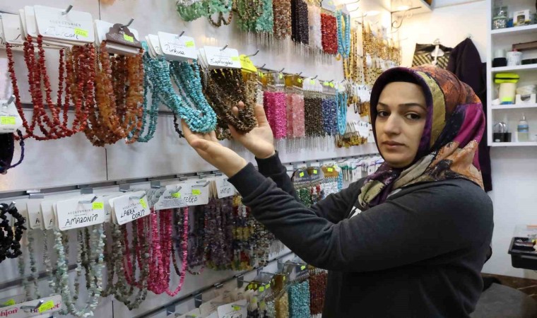 Elazığ’da yaşayan 3 çocuk annesi Hülya Yalçın’ın, pandemi döneminde bir çocuğu dünyaya geldi. Doğumdan sonra sürekli ağlayan çocuğuna doğal taş olan kehribar kolye takan Yalçın, çocuğunun sürekli ağlamasının azalmasının ardından doğal taşlara merak sardı. Yalçın doğal taşları internetten araştırarak işe koyuldu. Bir süre sonra doğal taşları sipariş ederek kolye, küpe ve bileklik yapmaya başladı. Yaptığı ürünleri ilk etapta arkadaşları ve ailesine veren Yalçın, kendisini geliştirmesinin ardından eşinin de desteğiyle bir dükkan açarak yaptığı el emeği ürünlerini satmaya başladı. Ametist, florit, unakit, kuvars, kehribar ve firuze gibi birbirinden değerli taşların vatandaşlar tarafından birçok faydası olduğunun altını çizen Yalçın, ileride ki hedefinin çocuklarıyla birlikte daha büyük bir yer açmak olduğunu belirtti.