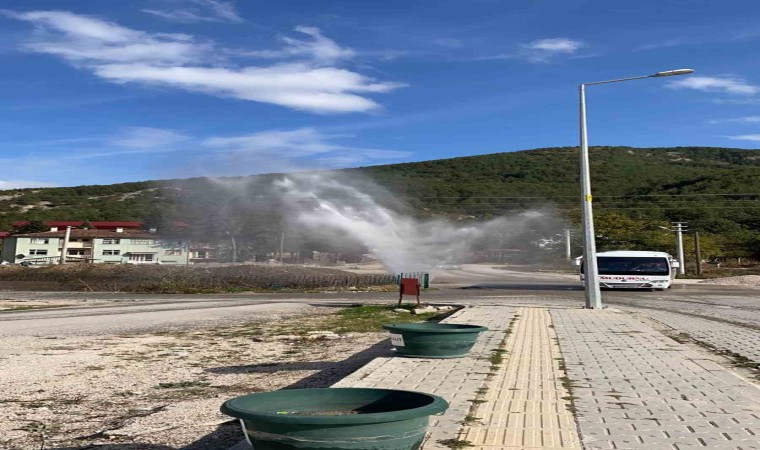 Bolu’nun Mudurnu ilçesinde doğalgaz borularını yer altına ekleme çalışmalarında, içme suyu ana şebeke borusu patladı.