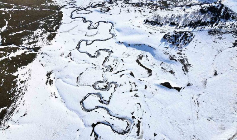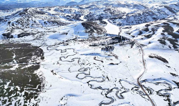 Tokat ile Ordu il sınırları arasında yer alan Perşembe Yaylası’ndaki menderesler, karla kaplı manzarasıyla insan damarlarını andıran büyüleyici bir görsel şölen sundu.
