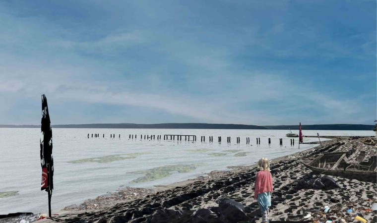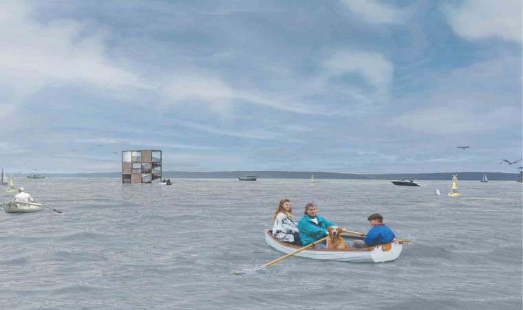 Genç mimarlar, iklim değişikliğinden ilham aldı, Çanakkale’de, 2100 yılında suların yükselmesiyle sular altında kalacak bir bölgenin gelecekteki halini anlatan tasarımlar yaptı.