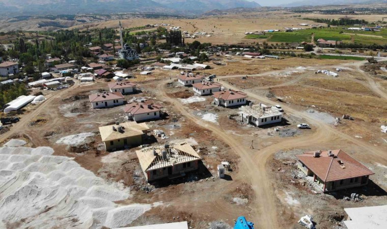 Asrın felaketinde büyük yıkıma uğrayan Malatya’nın Doğanşehir ilçesinde Toplu Konut İdaresince (TOKİ) tarafından afetzedeler için yapılan köy tipi konutların yapımı devam ediyor.