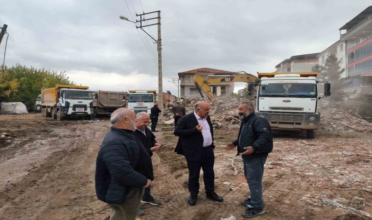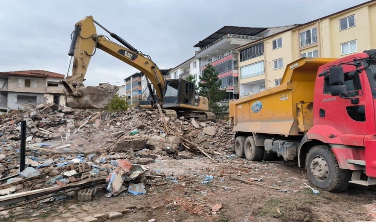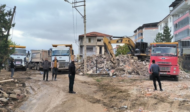 Kahramanmaraş merkezli depremlerde büyük yıkım yaşayan Malatya’nın Doğanşehir ilçesinde ağır hasarlı binaların yıkımı devam ediyor.