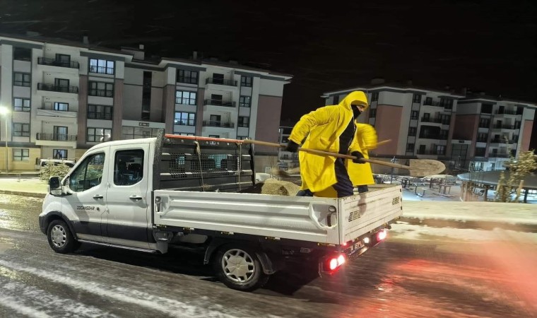 Deprem bölgesi Malatya’da dün başlayan kar yağışı il genelinde de etkili oldu. Depremin yıktığı ilçelerden biri olan Doğanşehir ilçesi de beyaz örtü ile kaplanırken, belediye ekipleri vatandaşların herhangi bir olumsuzluk yaşamaması adına çalışmalara devam ediyor.