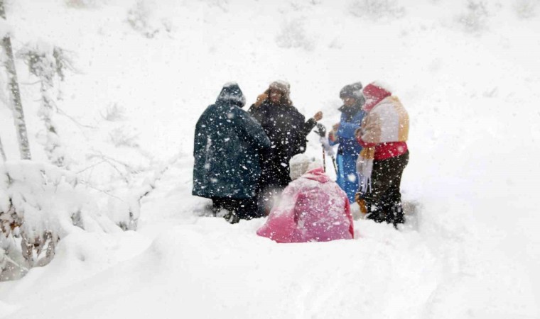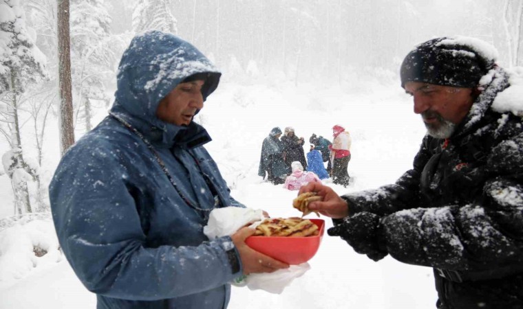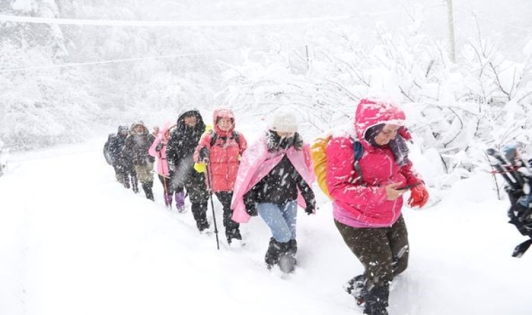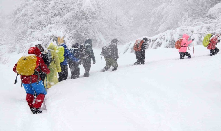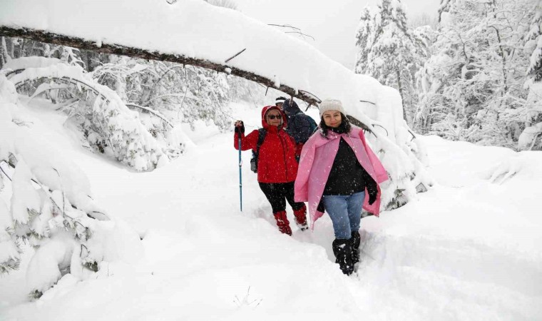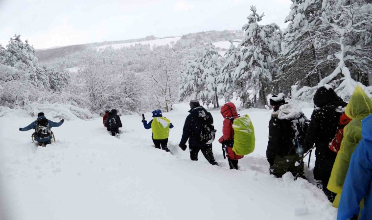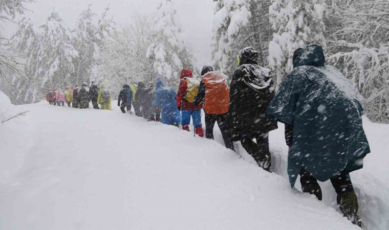 Bolu’da 23 doğasever, kar kalınlığının 70 santimetreyi aştığı 9 kilometrelik orman parkurunda yürüdü.