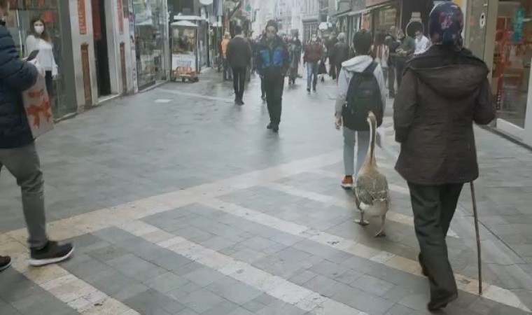 Trabzon’da ise sokak ve caddelerde genelde köpek gezdirenlere daha çok rastlanırken şehrin en işlek caddelerinden Uzunsokak’ta elinde bastonu yanında kümes hayvanı olan “Kaz” ile birlikte gezen yaşlı kadının görüntüsü ilgi odağı oldu.
