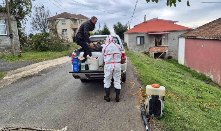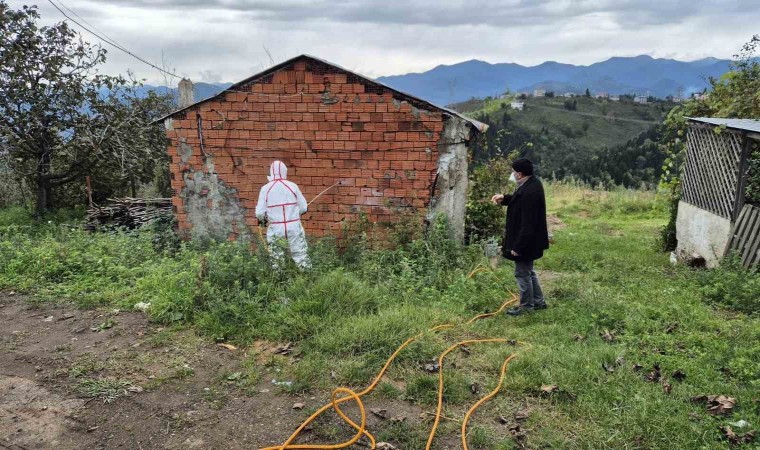 Karadeniz Bölgesi’nde başta fındık olmak üzere tarım ürünlerine büyük zarar veren kahverengi kokarca böceğiyle mücadele çalışmaları kapsamında Trabzon’un Ortahisar ilçesinde ilaçlama çalışmalarına başlandı.