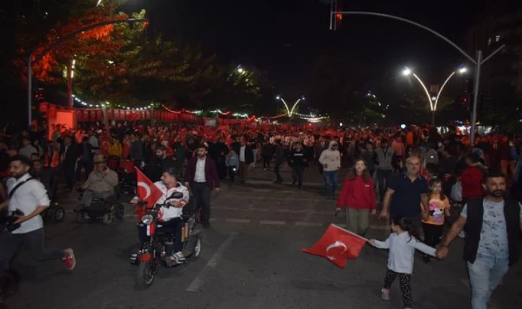 Cumhuriyet’in kuruluşunun 100’üncü yıl dönümü kutlamaları kapsamında Batman'da binlerce kişi fener alayı ve bayrak yürüyüşü gerçekleştirdi. Turgut Özal Bulvarında başlayıp belediye binasına kadar devam eden yürüyüşe Vali Ekrem Canalp de katıldı. Belediyede vatandaşları mehter takımı karşıladı. Mehter takımı Cumhuriyetin 100’üncü yılına özel marşlar ve şarkılar söyledi. Program düzenlenen resepsiyonla sona erdi. (DHA)