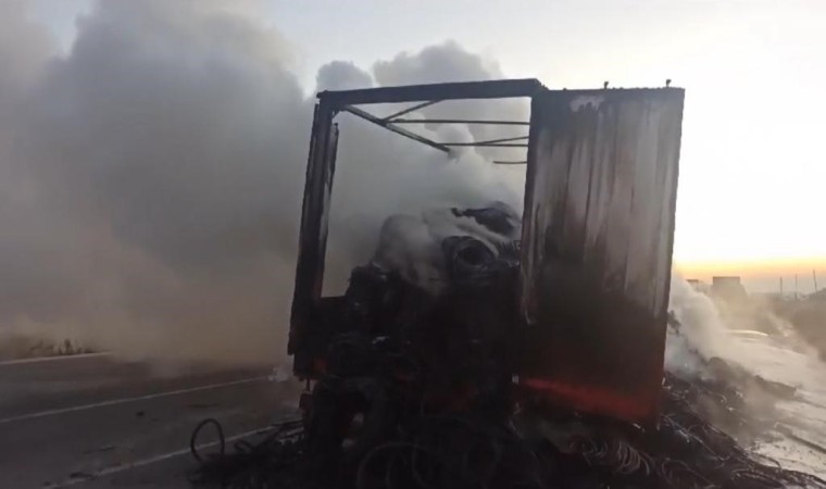 Ağrı’nın Doğubayazıt ilçesinde yer alan Gürbulak Tır Parkı’ndaki bir tır yanarak küle döndü.