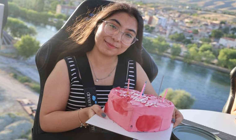 Kapadokya bölgesinde yapılan sıra dışı etkinliklere bir yenisi daha eklendi. 18 yaşına giren genç kız, bu mutluluğunu gökyüzü restoranında kutladı.