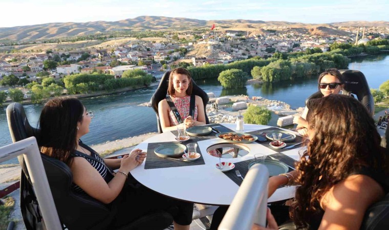 18 yaşına giren Kıymet Nur Taşkın doğum gününü kutlamak için gökyüzünü seçti. Arkadaşları ile birlikte bir vinç sayesinde yerden 45 metre yükselen platform üzerine kurulan; ’Dinner in the Sky - Cappadocia’ gökyüzü restoranına binen Taşkın, bu mutlu gününü "Zirvede olmayı seviyorum” diyerek gökyüzünde kutladı. Geniş güvenlik tedbirleri alındıktan sonra vinç yardımıyla yaklaşık 45 metre yükselen platform üzerinde kurulan restoranda doğum gününü kutlayan Kıymet Nur Taşkın yaptığı açıklamada; “Şu anda çok mutluyum. Bunu planlayan arkadaşlarıma ve aileme çok teşekkür ederim. Burada güvende olmamı sağlayan ekibe de çok teşekkür ediyorum. Zirvede olmayı seviyorum. Bu nedenle böyle ailem bu doğum günümü böyle kutlamak istedi. Bende hem yeni yaşımın, hem de manzaranın keyfini çıkartıyorum” dedi.