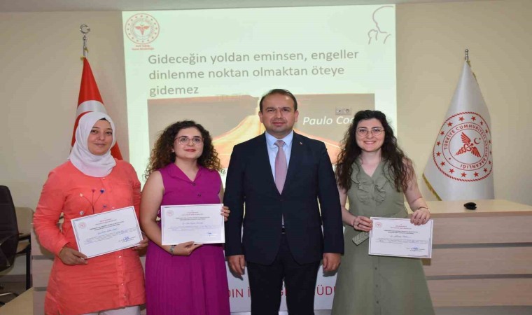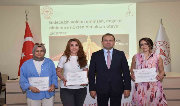 Eğitim programı sonunda eğitimi başarı ile tamamlayan sağlık personeline sertifikaları İl Sağlık Müdürü Şenkul tarafından takdim edildi.