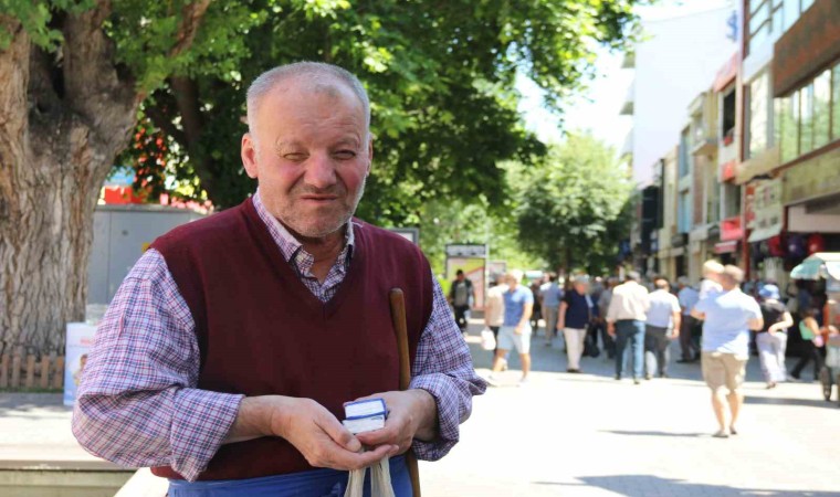 Eskişehir’de doğuştan görme engelli olmasına rağmen 40 yıldır sokaklarda mendil, yara bandı gibi ürünler satarak 3 çocuk yetiştiren ve 2 ev alan 62 yaşındaki Ramazan Acar, “Ben hayattan bıkanları sevmem. Burada ne kazanırsak onunla idare oluyoruz” dedi.