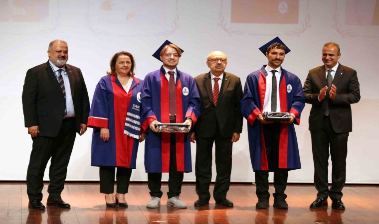 Dr. Alp Yapan (24) ile Dr. Barış Kılboz’a diplomaları Tıp Fakültesi Dekan Yardımcısı ve Lisansüstü Eğitim Enstitüsü Müdürü Prof. Dr. Ayşen Bayram, doğum belgeleri ise SANKO Üniversitesi Genel Sekreteri Dr. Yusuf Ziya Yıldırım ile SANKO Üniversitesi Hastanesi Genel Müdürü Dr. Sermet Kileci tarafından verildi.