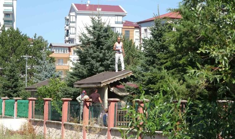 Sivas’ta gittiği diş hastanesinde doktorla tartışan şahıs, elindeki kesici aletle hastane bahçesindeki kamelyanın üzerine çıktı.