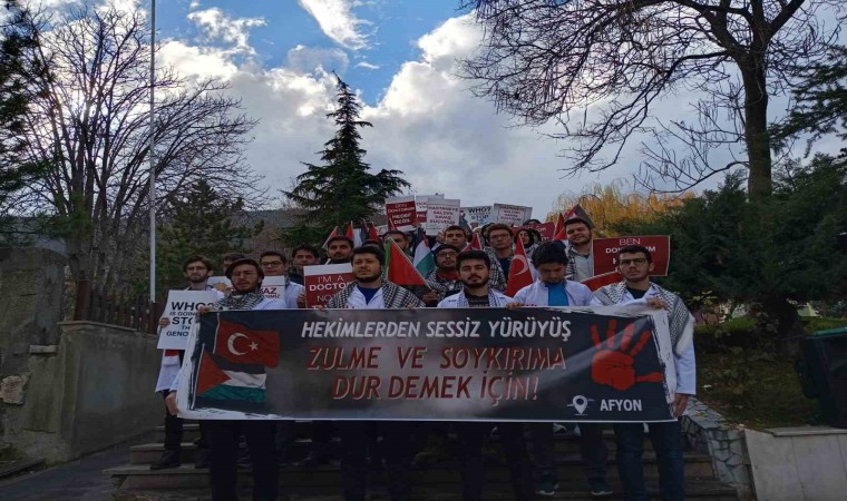 Afyonkarahisar’da bir grup doktor İsrail’in, Filistin’de gerçekleştirdiği katliamı yaptıkları basın açıklaması ile protesto etti.