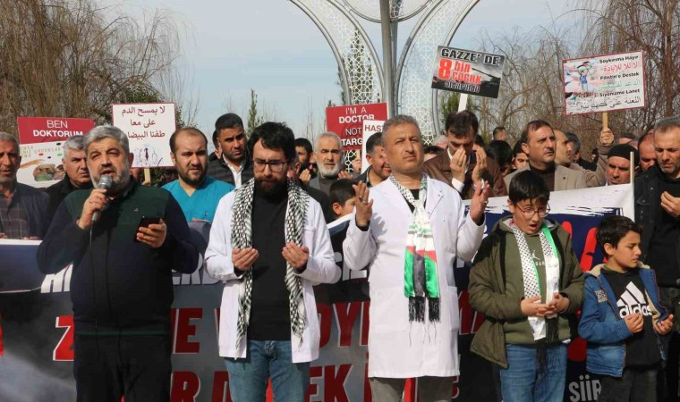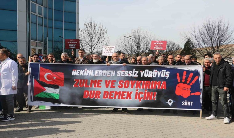 Kurtalan Devlet Hastanesi önünde beyaz önlüklerini giyerek toplanan doktor ve sağlık çalışanları, ellerinde taşıdıkları Türk ve Filistin bayrakları ile 15 Temmuz Demokrasi Meydanı önüne kadar slogan atmadan yürüdü. Burada grup adına açıklama yapan Dr. Muhammed Bakır Varol, İsrail’in Filistin topraklarında işlediği suçların büyüyerek devam ettiğini söyledi. Adalet Divanı’nda İsrail’i mahkum eden Güney Afrika’ya selam gönderilen Varol, "İsrail ile tüm ilişkileri sonlandıran Brezilya’ya selam olsun. Filistin meselesi Arap meselesi değildir. Tüm Müslümanların ve tüm insanlığın ortak meselesidir. Bu mücadelenin amacı denizden nehre kadar tüm Filistin topraklarının kurtarılması ve özgür Filistin Devleti’nin kurulmasıdır. Kudüs bir bütündür, bölünemez. Başkenti doğu Kudüs olan ve ordusuz kukla bir devlet asla kabul edilemez" dedi.