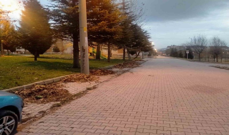 Kütahya’nın Tavşanlı ilçesinde cadde üzerine dökülen yapraklar toplanıyor.