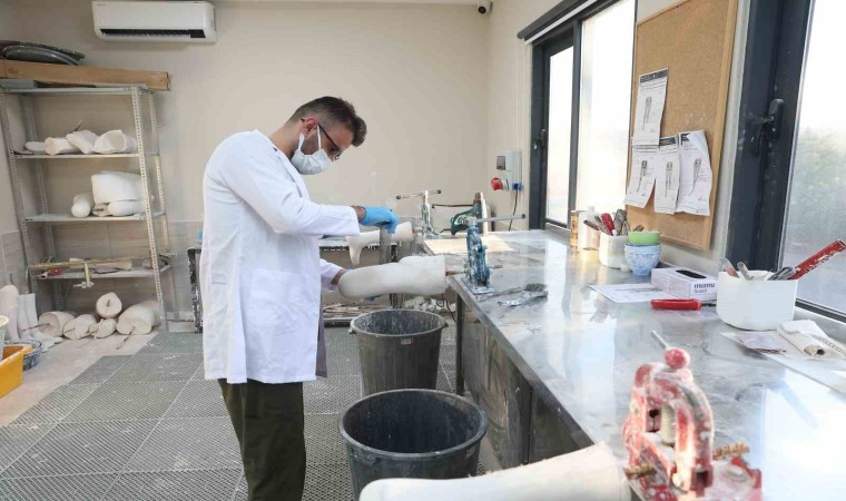 Hatay’ın Arsuz ilçesinden kızıyla beraber Gaziantep’e getirilen Senem Ece Mazı, Ortez-Protez Merkezi’nde Başkan Fatma Şahin ile bir araya geldi. Depremeze vatandaşlar için ücretsiz hizmet veren merkezde Senem Ece Mazı ve kızını ağırlayan Başkan Şahin, vicdanları sızlatan dolandırıcılık olayına karşı sessiz kalmayarak mağduriyetin en kısa sürede giderileceğini söyledi. Senem Ece Mazı’ya yapılacak tam donanımlı yeni protez için uzman teknikerler vücut yapısı, kilosu gibi teknik ölçümleri tamamladı. Yapımına başlanan protez için 1 hafta içerisinde deneme soketiyle 2-3 saatlik yürüyüşle denemeler yapılacak. Rahatsız edici durumlar analiz edilerek giderilecek, 10 gün içerisinde yeni protezler takılacak.