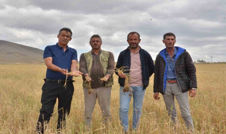 Çiftçilerden Hamza Kızoğlu da dolunun buz şeklinde yağdığına işaret ederek, “Önce bizi deprem sonra da tufan vurdu. Zarar çok büyük. Buralara dolu yağmadı buz yağdı. Ekinleri yerle bir etti. Başakları kopardı. Zarar çok büyük” dedi.