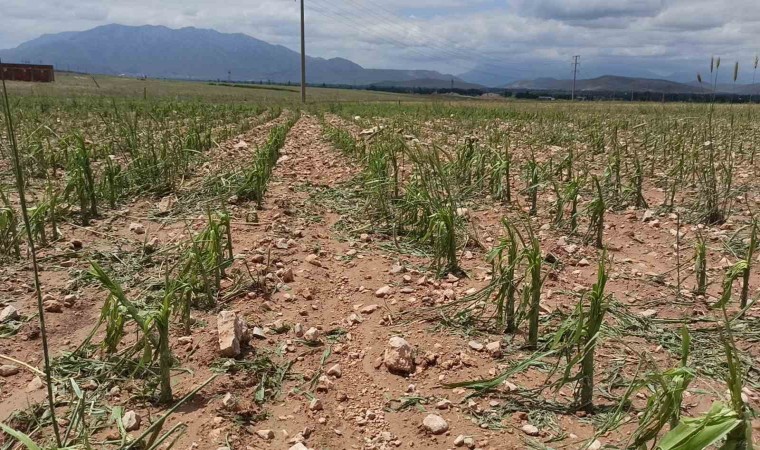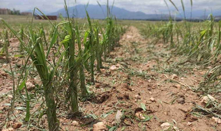 Mısır tarlasında büyük çaplı hasar oluşan Hüseyin Ceran ise “Önce deprem vurdu. Şimdi de dolu ve yağmur vurdu. Mısırlarımızda yaprak denen bir şey kalmadı. Göbeklerini de kırmış” ifadelerini kullandı.