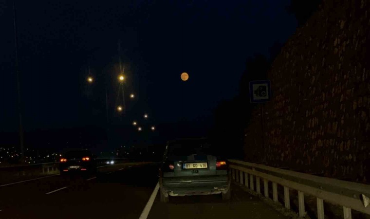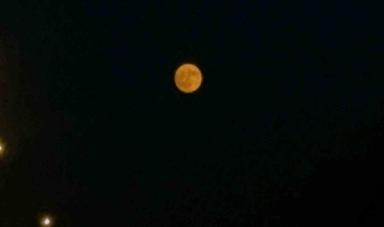 Düzce’de gece saatlerinde gökyüzünde beliren dolunay görenleri hayran bıraktı.