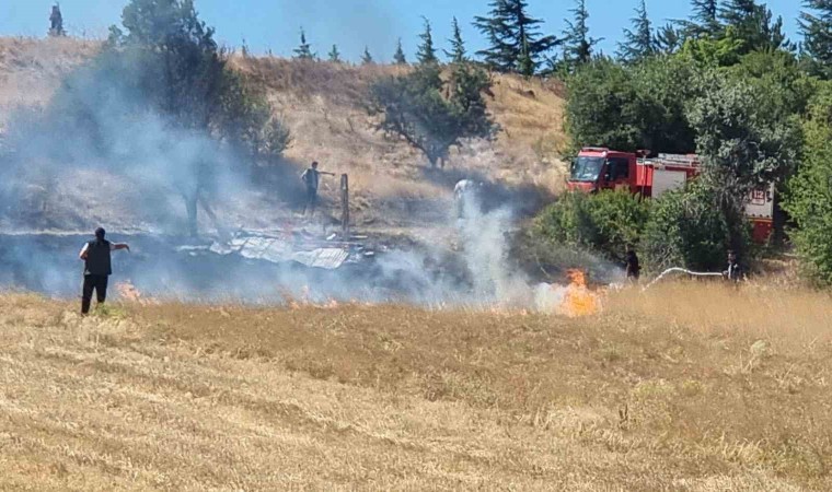 Kütahya’nın Domaniç ilçesinde bir barakada çıkan yangın tarlalara sıçradı.